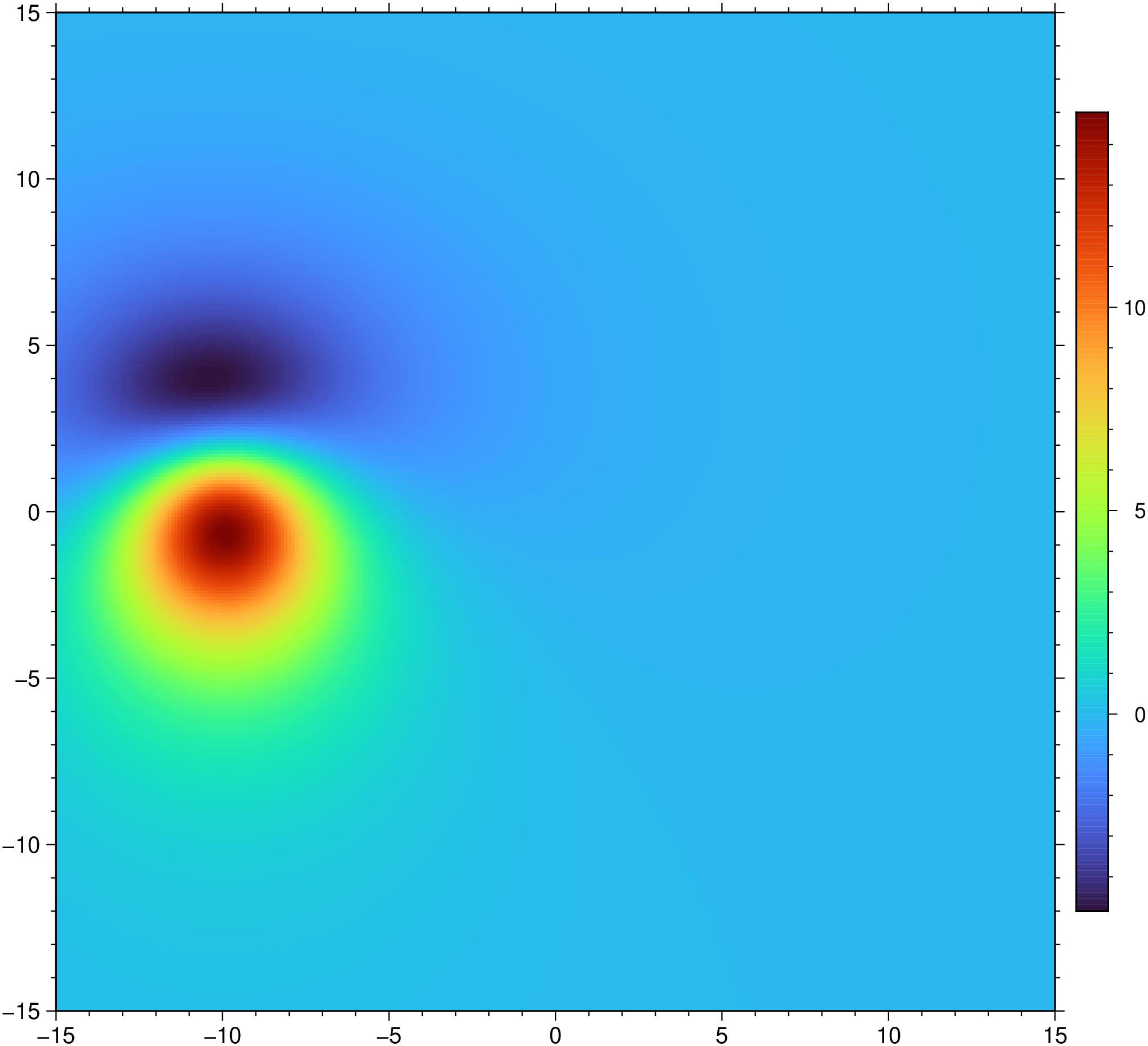 G = gravmag3d(region="-15/15/-15/15", I=0.1, mag_params="10/60/10/-10/40", body=(shape=:prism, params="1/1/1/-5/-10/1"));